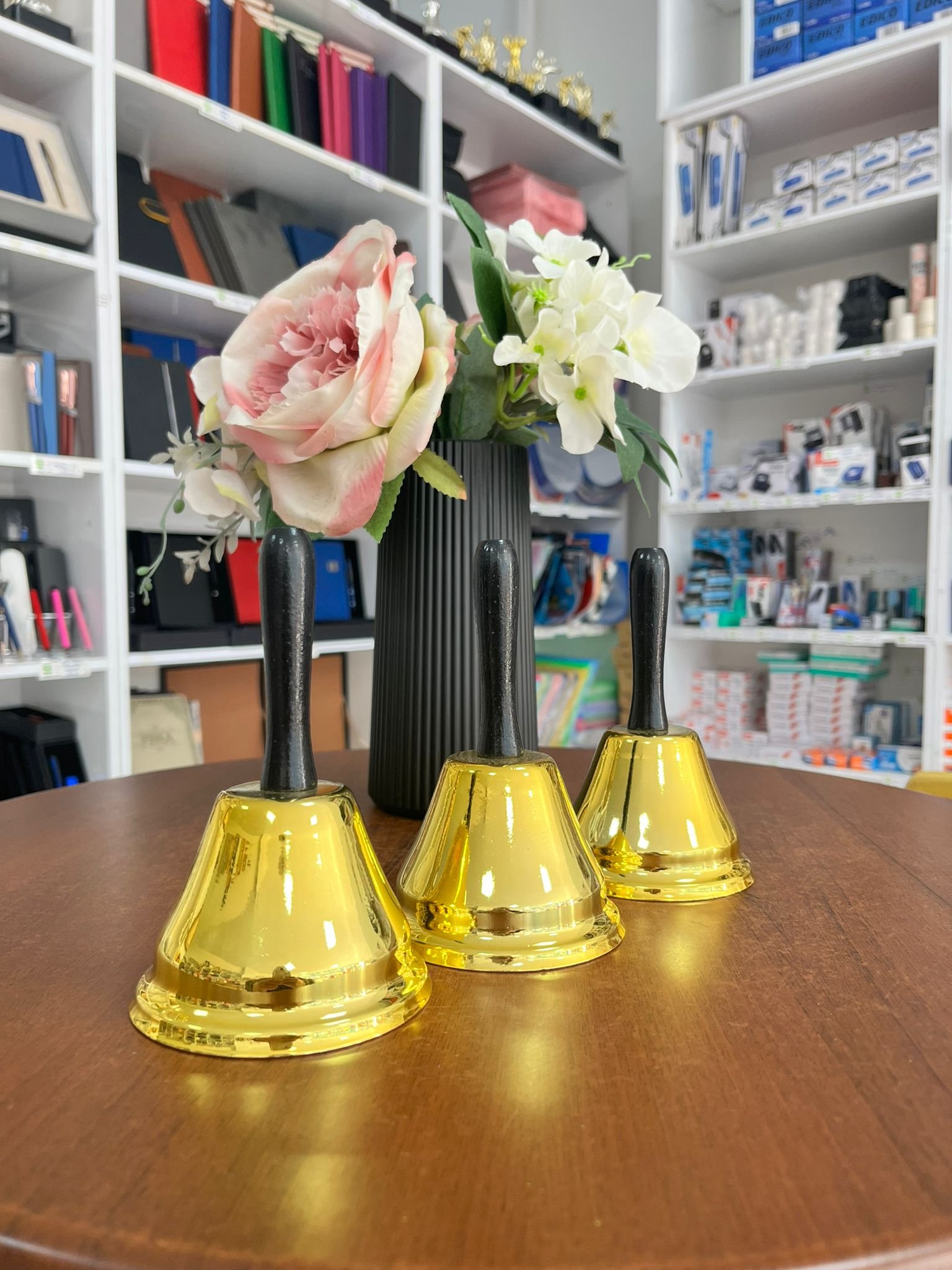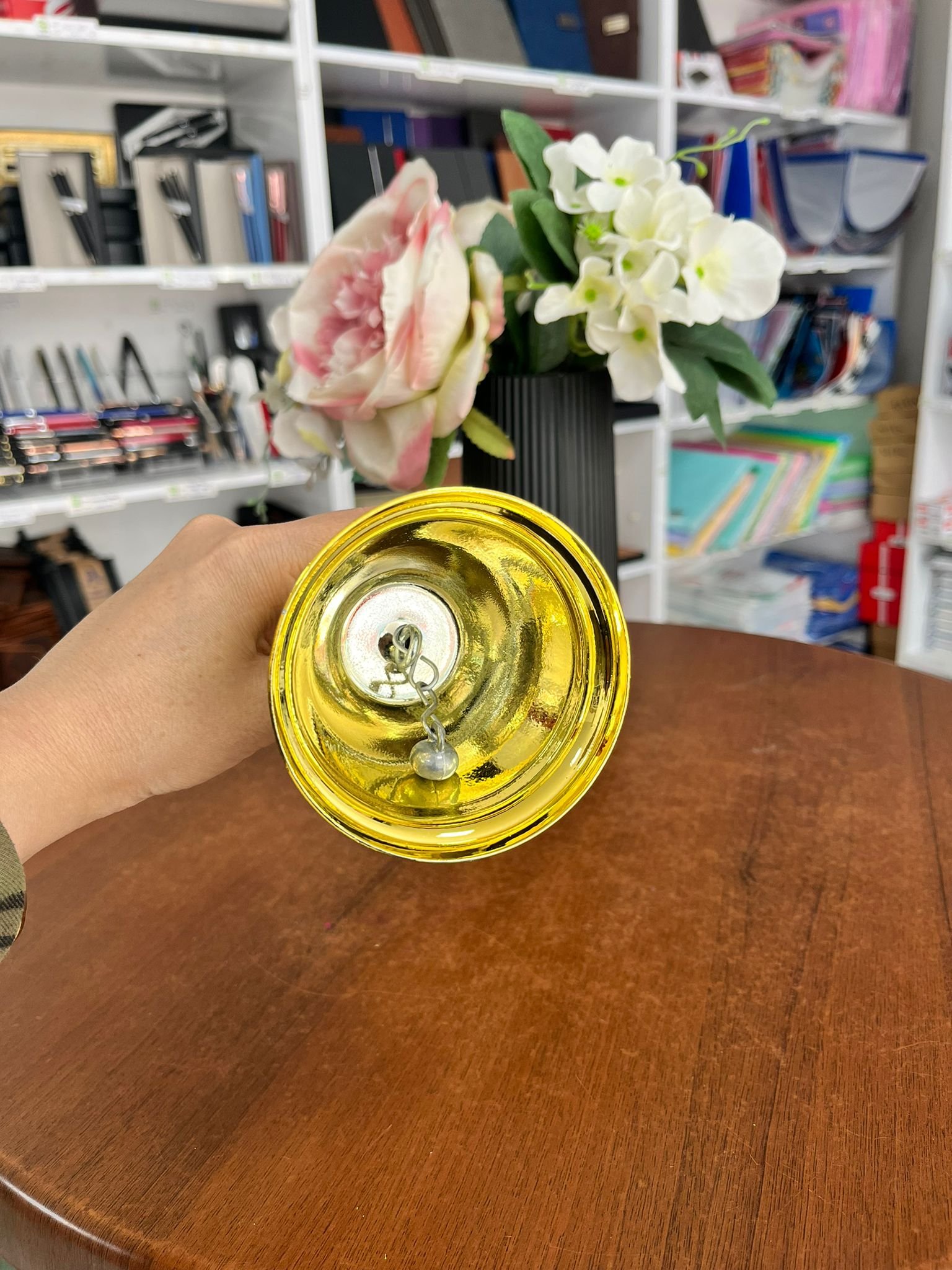 - Gold renkli ve ahşap saplıdır.