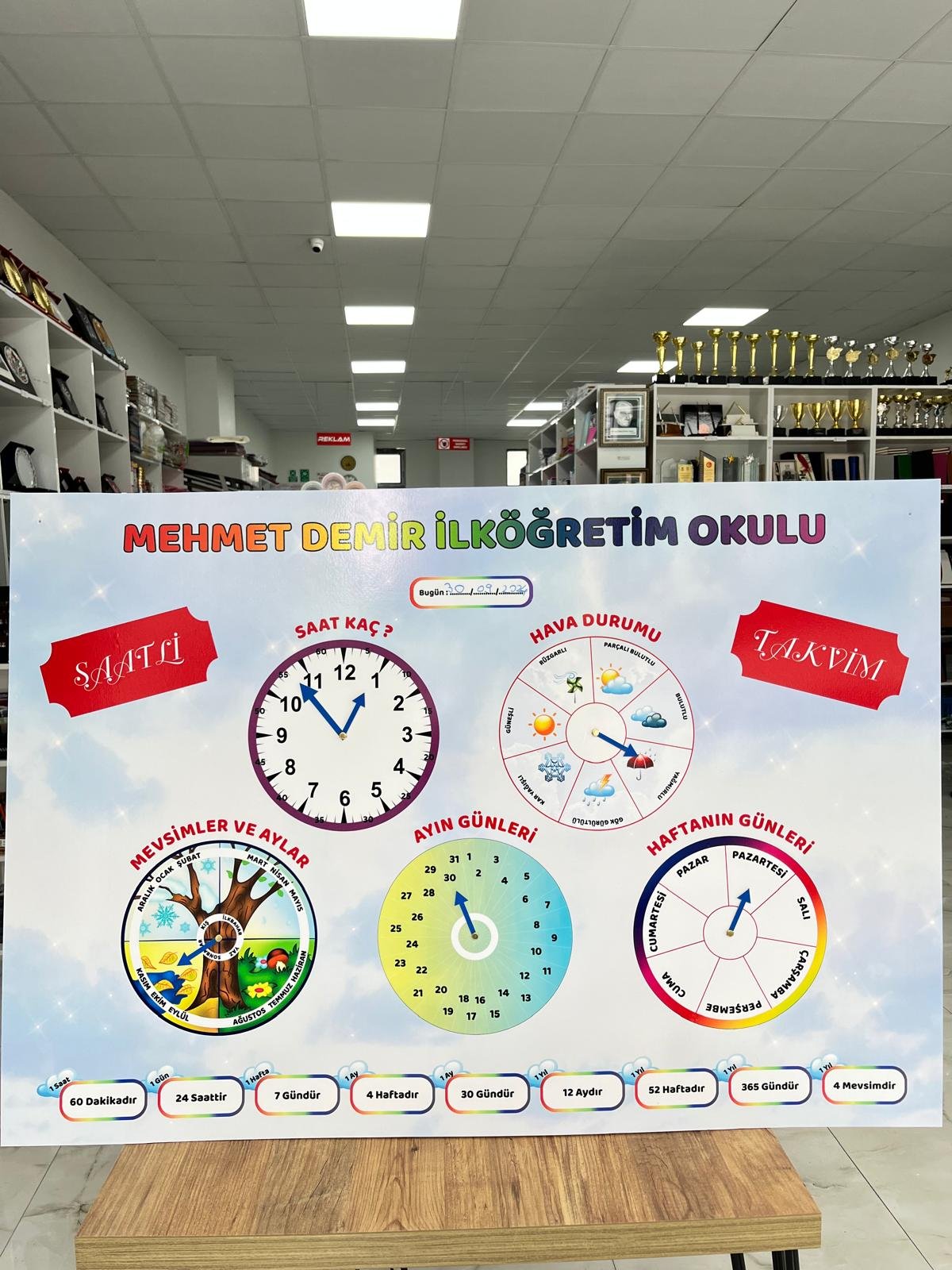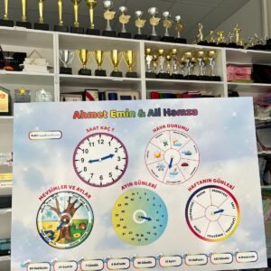 - saat, mevsimler, günler, hava durumu, ayın günleri konularını içerir.